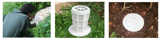 - ทำการติดตั้งสถานี รอบตัวบ้านโดยวางห่างจากตัวบ้านประมาณ 1 เมตร และระยะห่างระหว่างสถานีแต่ละตัว