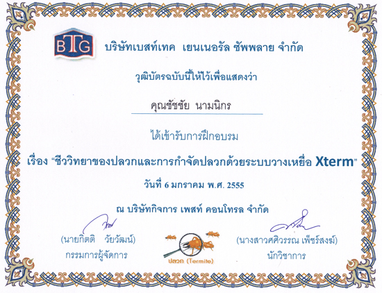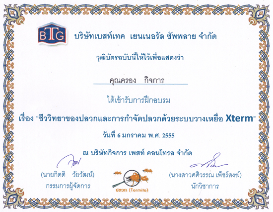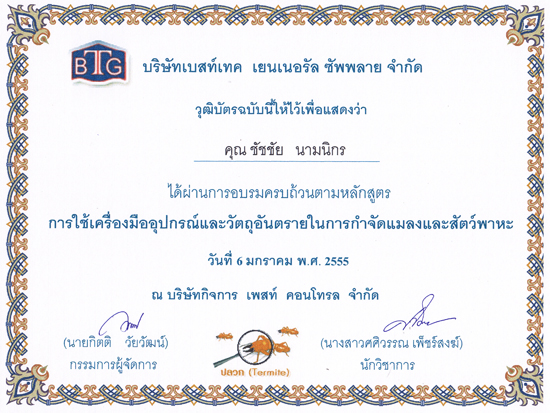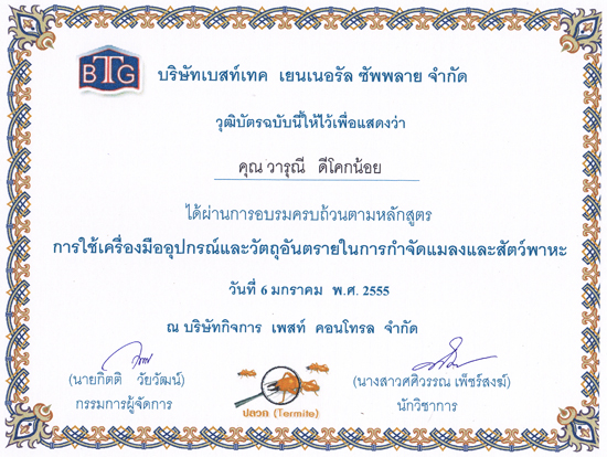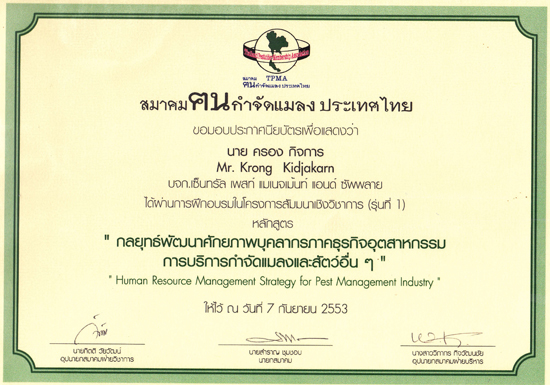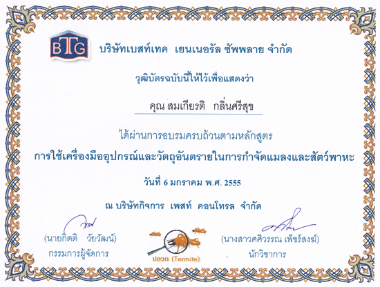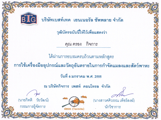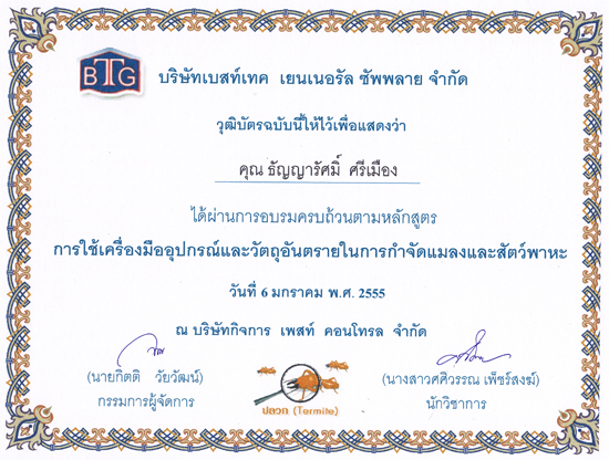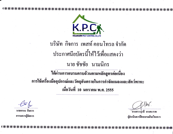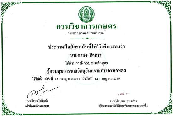หนังสือรับรองการผู้ควบคุมการขายวัตถุอันตรายฯ